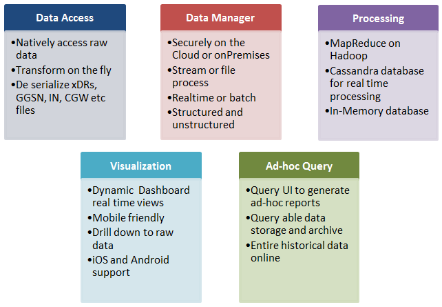 Gamma Skybase is a real time, integrated, CSP focused platform that can manage data from collection at source to analyses to interactive visualizations. Skybase can access and process streaming data such as data generated from sensors, NFCs, M2M interfaces, etc., or files generated from network elements as well as MSC, IN, GGSN, CMTS, etc., and perform various analytics including Descriptive, Exploratory and Predictive to generate real time and near real time actionable results.